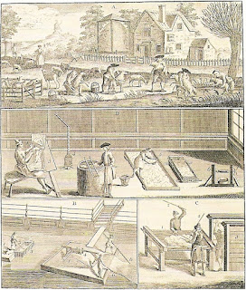 [Proceso de producción de la lana, grabado por Hinton, 1749. Civica Raccolta Stampe Bertarelli. Universal Magazine, Milán.]